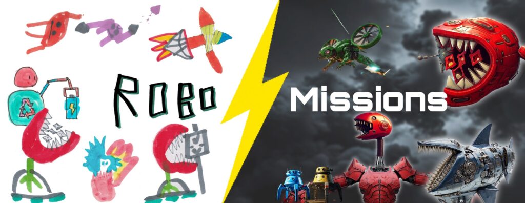 Each deck includes: 72 ROBO Missions Cards featuring our own hand-drawn art, paper box, damage counters, and a game rule pamphlet.